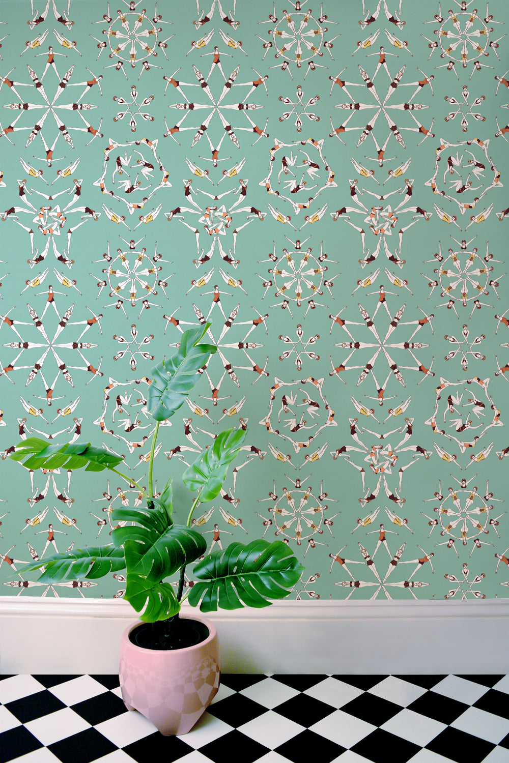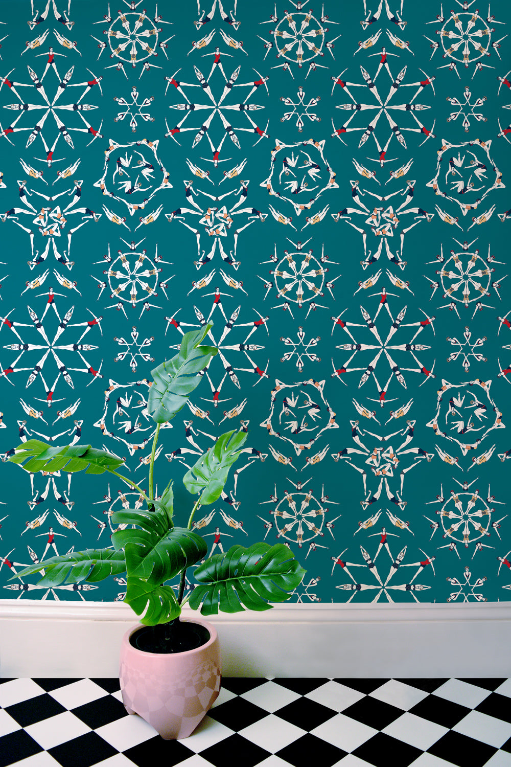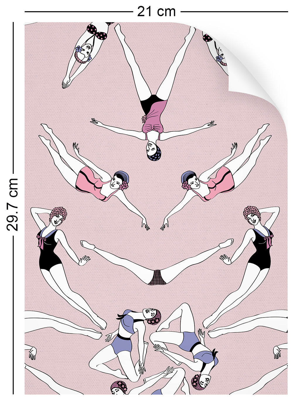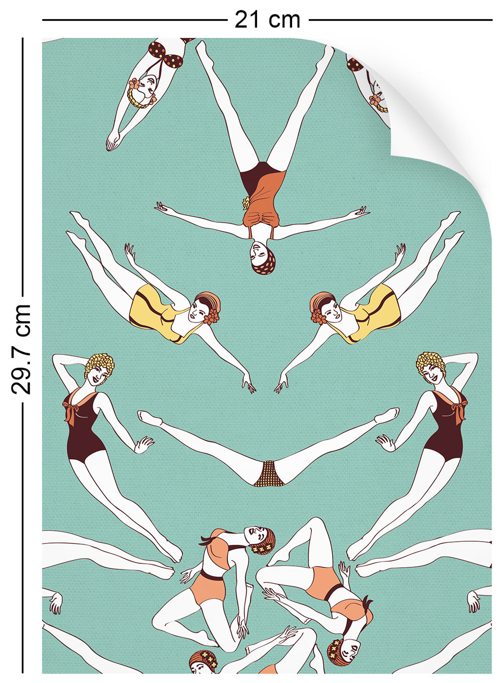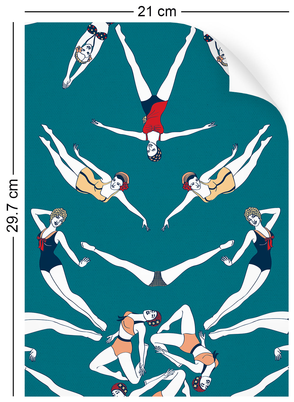 The sassy synchronised swimmers in this Splash! wallpaper by Dupenny are perfect for adding a drop of lido fun time to your bath time. This popular pattern was inspired by bathing beauty and Hollywood legend, Esther Williams. Splash out and create something totally unique in your wash room with this fun, playful wall covering.