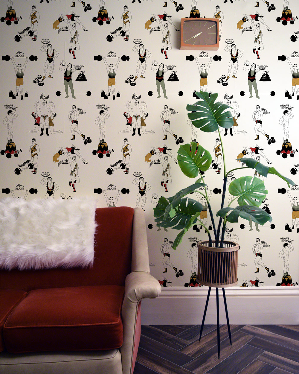 Beefy bodybuilders, moustaches and circus girls aplenty feature in this funny Strongman wallpaper from Dupenny. Humorous character tag-lines help capture these comical posers perfectly. This whimsical wallcovering is surprisingly versatile if you're looking for some fun home inspiration. Dupenny’s signature monochrome palette will compliment any colour scheme.
