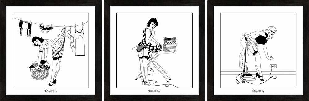Dupenny's ever popular, tongue-in-cheek 50s Housewives art prints are perfect if you’re looking to inject some fun and personality into your home. The classic black and white palette will compliment any colour scheme. Our art prints also make ideal gifts. Purchase the full set of 3 characters for a 10% discount!