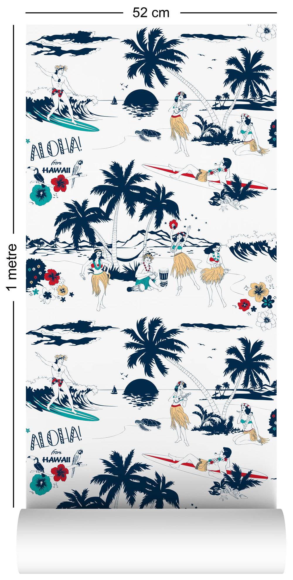Aloha! This Hawaiian, tropical beach wallpaper by Dupenny is sure to heat up any room. Perfect for welcoming cheeky tiki surf vibes to your home setting; make a hot design statement with this South Pacific themed wall decor.