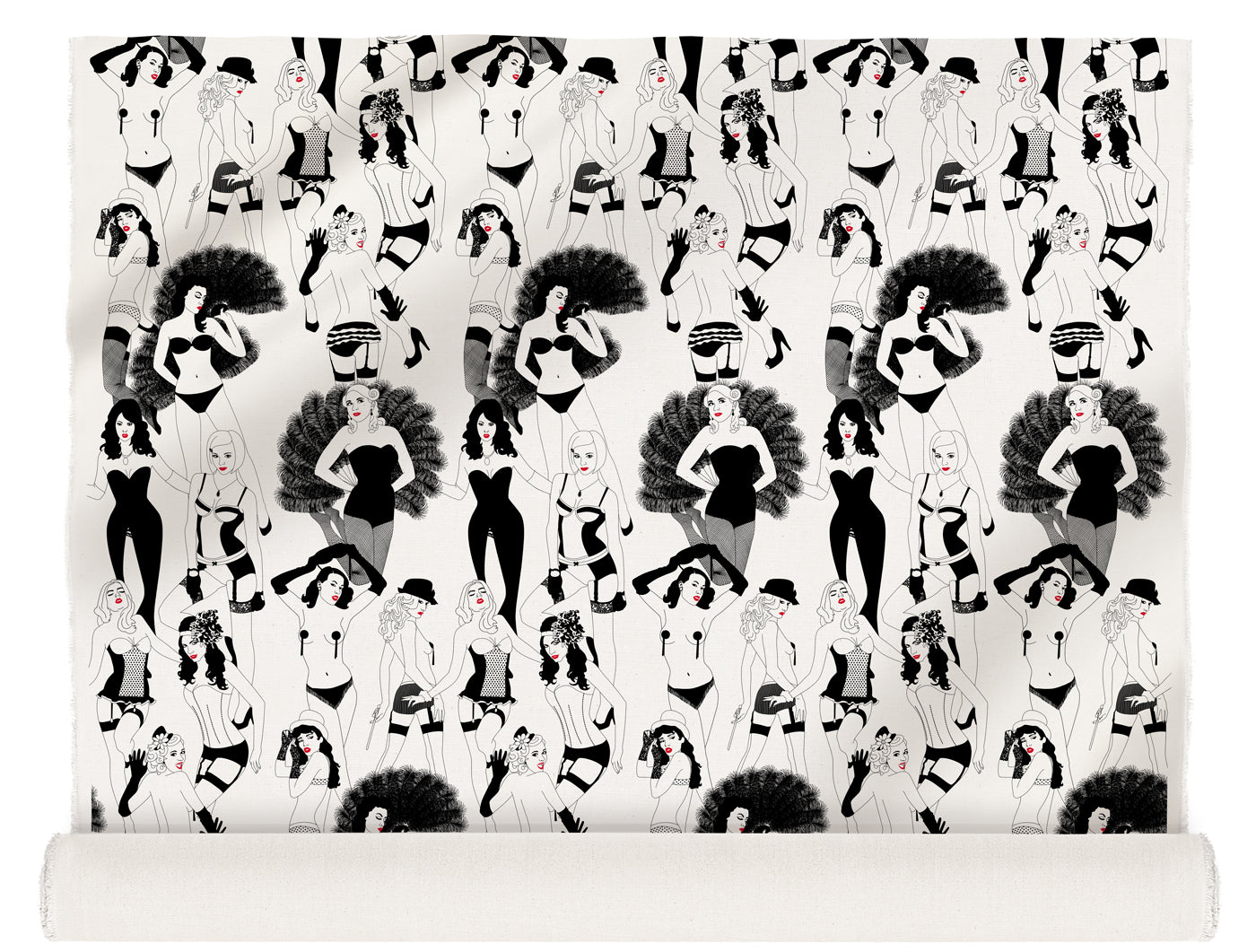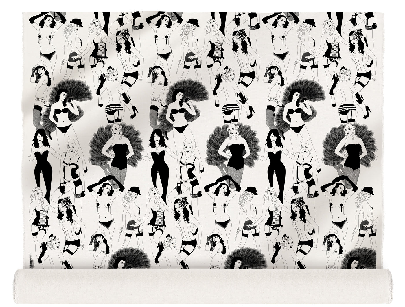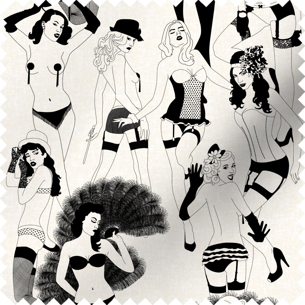 Add some 'POW' to your powder room! Inspired by vaudeville cabaret dancers, this boutique Burlesque fabric by Dupenny is ideal if you're looking for sexy boudoir ideas. This maximalist cotton/linen is just as at home on your bedroom drapes as it is in a chic Parisian cocktail bar.