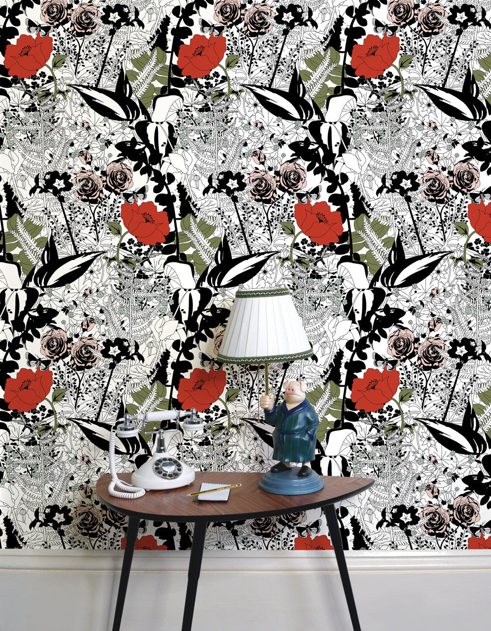 All the flora and fauna are captured in this bold, floral country garden wallpaper. Look closely at the charming English Garden design and you will see an abundance of summer delights and details waiting to be discovered! This attention to detail and illustrative style is what sets Dupenny apart from other pattern designers. Renovate those tired walls and bring a slice of the British countryside inside.
