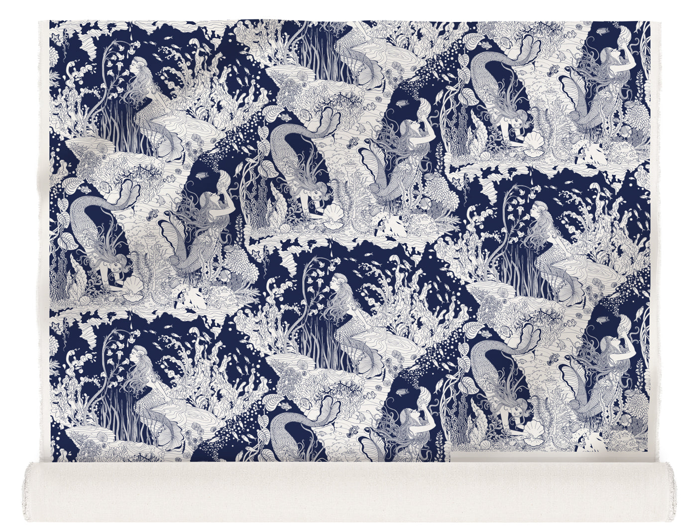 Inspired by the Art Nouveau era this boutique Mermaids fabric from Dupenny reveals an enchanting underwater world. The depth of design is simply mesmerising and leagues ahead of cheaper high street patterns. Our fabrics are perfect for a range of projects from curtains to light upholstery. This sophisticated design in contrasting navy blue on white looks fabulous in all corners of the home.