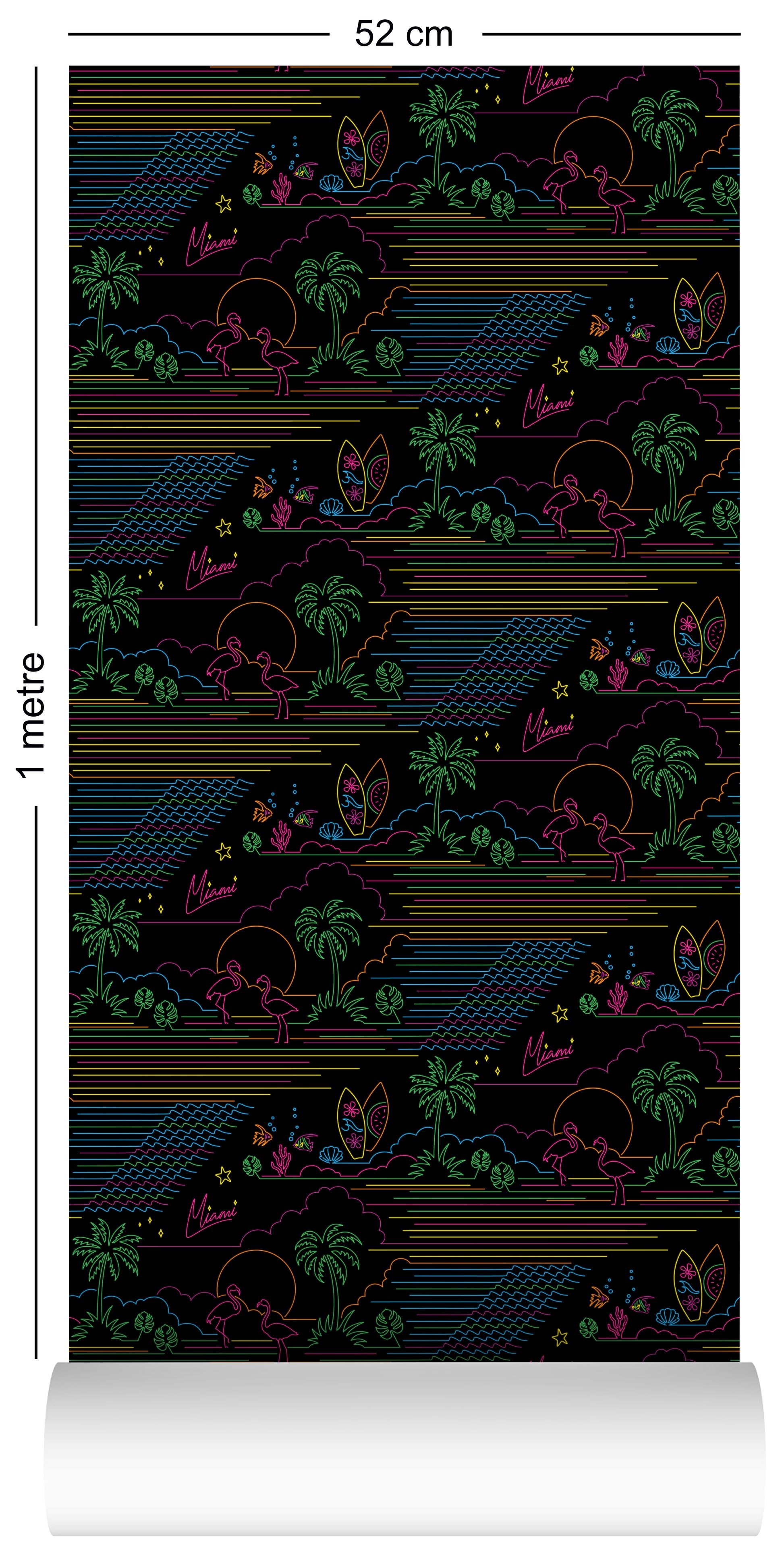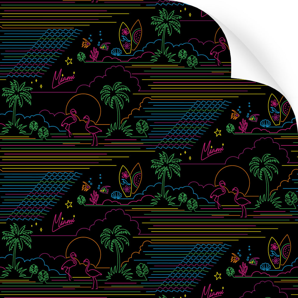 This 80s style tropical-tastic Miami Dreams wallpaper was inspired by Miami Vice and the neon lights of the Magic City. It’s pure 1980s nostalgia for your walls!