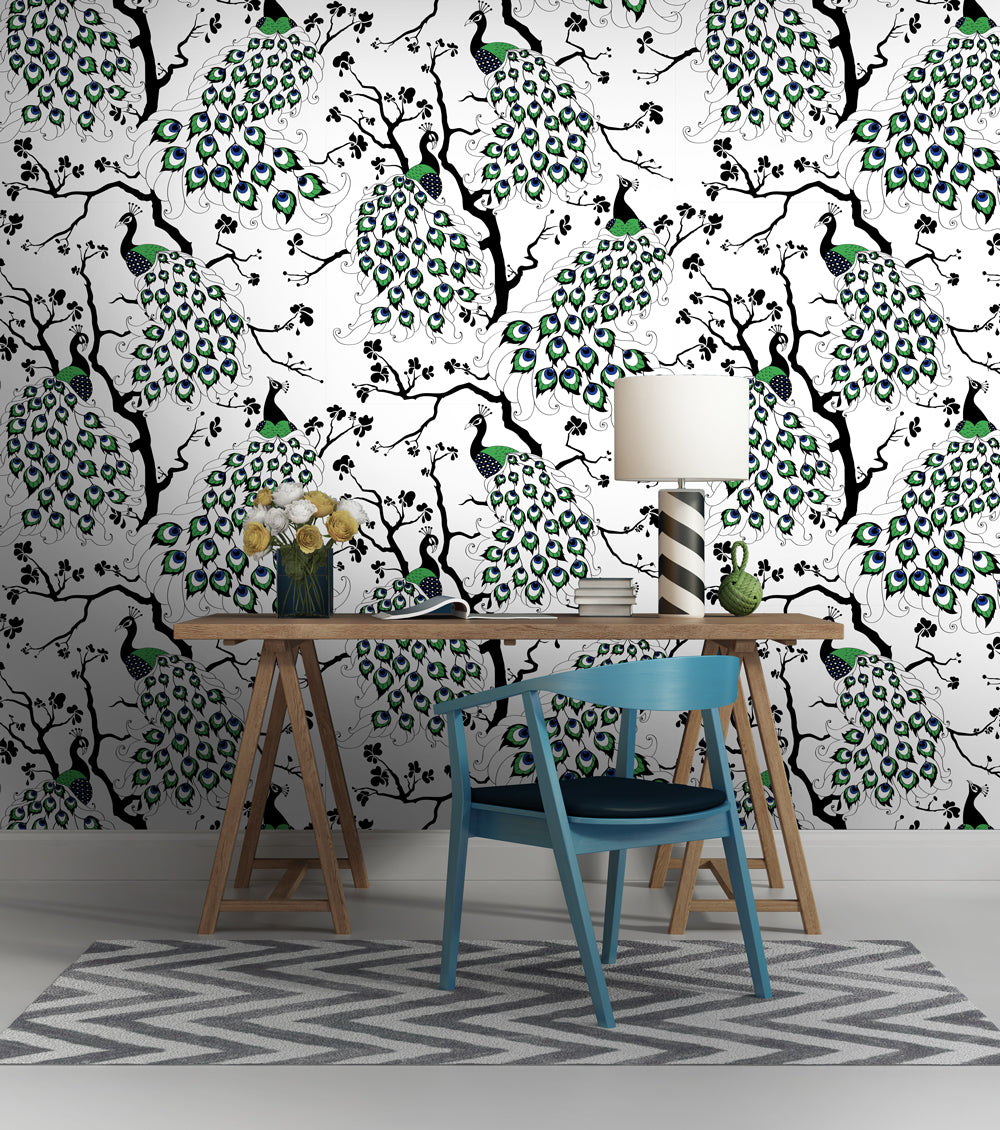 Starting life as a giant wall mural, this luxury Peacock wallpaper by Dupenny will infuse an air of elegance into your abode with its magnificent plumage! If you're looking for home decor ideas, this oriental-inspired bird wallpaper works well in all settings, and is suitable for adults and children alike.