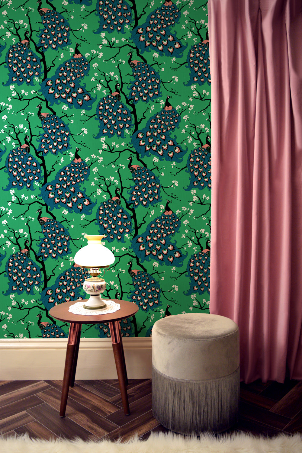 Starting life as a giant wall mural, this luxury Peacock wallpaper by Dupenny will diffuse an air of elegance into your abode with its magnificent plumage! If you're looking for home decor ideas, this oriental-inspired bird wallpaper works well in all settings, and is suitable for adults and children alike.