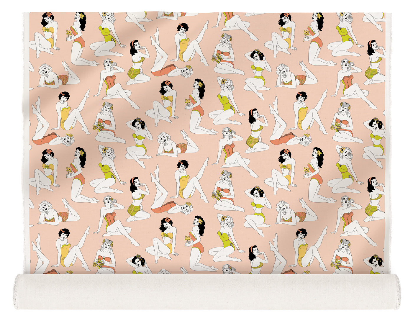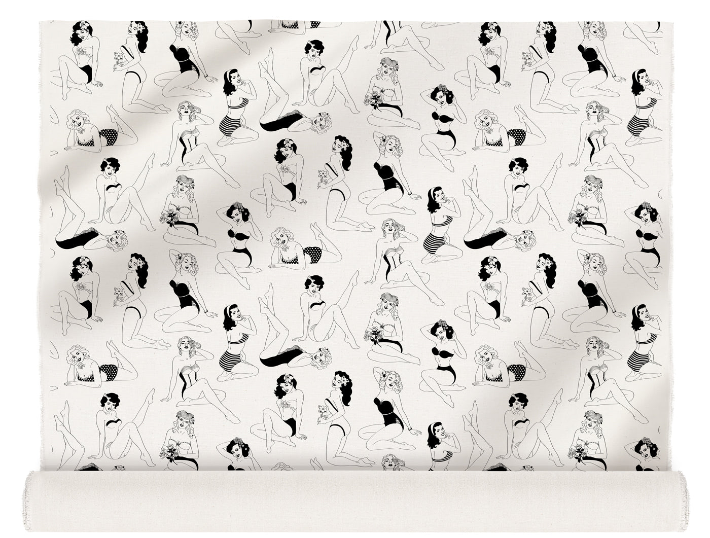 This boutique Pin-Up fabric by Dupenny is a nod and a wink to the great American pin-up artists and models of the past. If you’re a fan of the works of Gil Elvgren, Alberto Vargas and George Petty then this wallcovering is for you! Allow these buxom bombshells to brighten up the bedroom, boudoir and beyond.