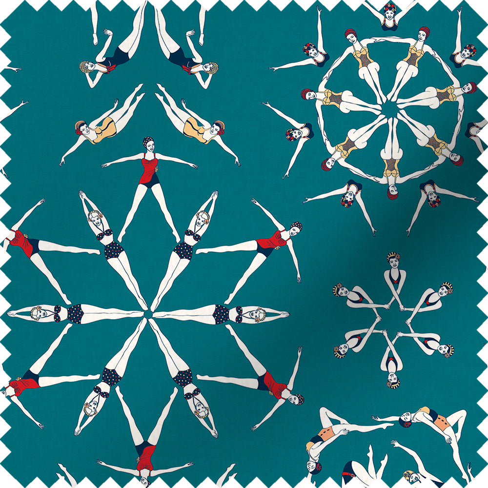 The sassy synchronised swimmers in this Splash! fabric by Dupenny are perfect for adding a drop of lido fun time to your bath time. This popular pattern was inspired by bathing beauty and Hollywood legend, Esther Williams. Splash out and create something totally unique in your wash room, pool area or summer house with this fun, playful fabric.