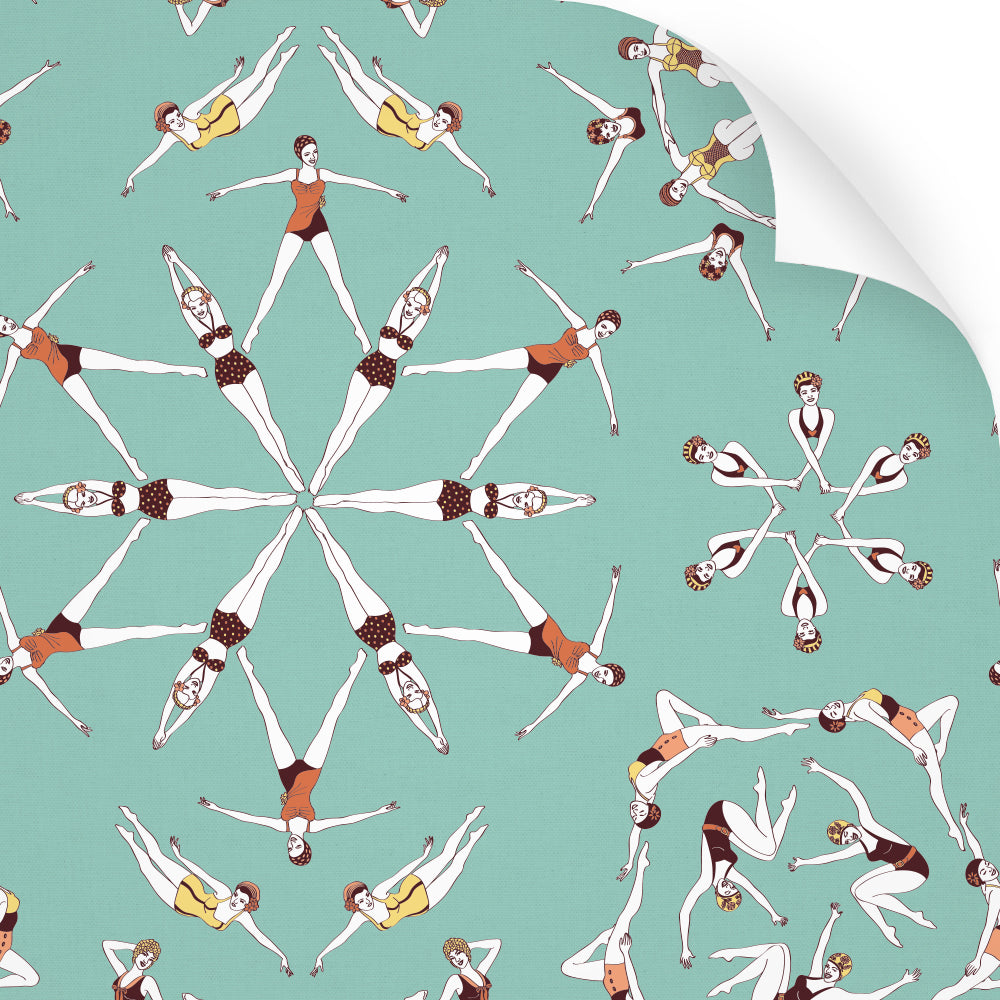 The sassy synchronised swimmers in this Splash! wallpaper by Dupenny are perfect for adding a drop of lido fun time to your bath time. This popular pattern was inspired by bathing beauty and Hollywood legend, Esther Williams. Splash out and create something totally unique in your wash room with this fun, playful wall covering.