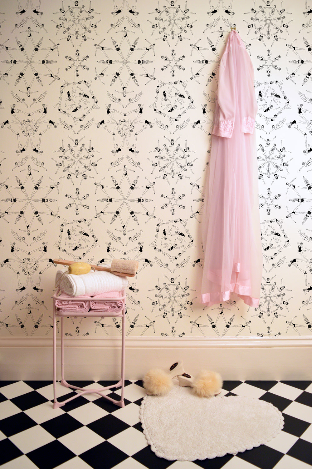 The sassy synchronised swimmers in this Splash! wallpaper by Dupenny are perfect for adding a drop of lido fun time to your bath time. This popular pattern was inspired by bathing beauty and Hollywood legend, Esther Williams. Splash out and create something totally unique in your wash room with this fun, playful wall covering.