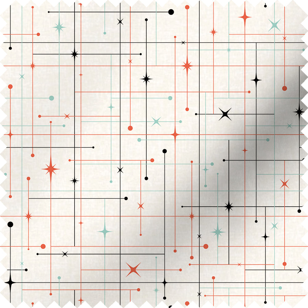 Inspired by the artist’s Californian road trip adventures, this pattern is Dupenny’s understated take on the iconic mid-century starburst designs of 1950s and 1960s Americana. This classic fabric will make you feel like you’ve just stepped into Modernism Week!