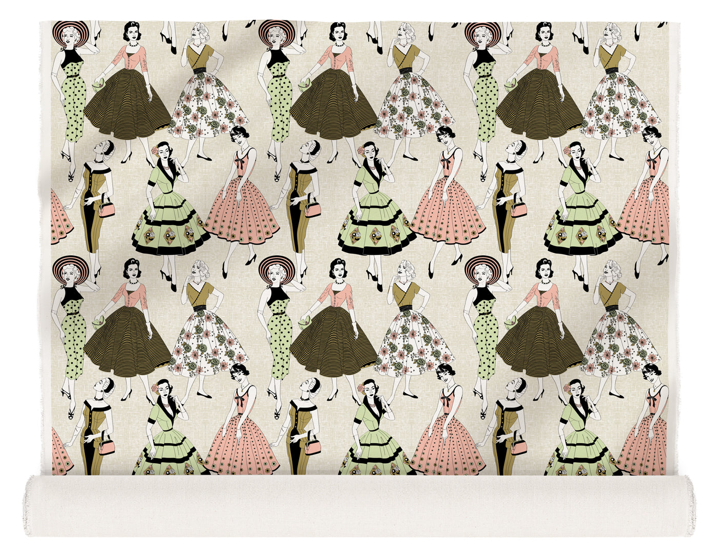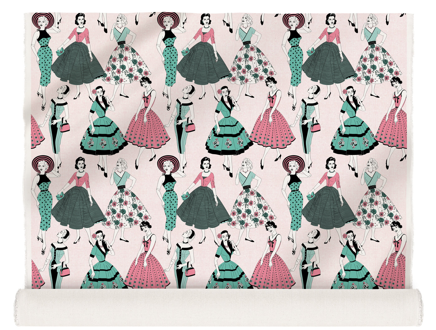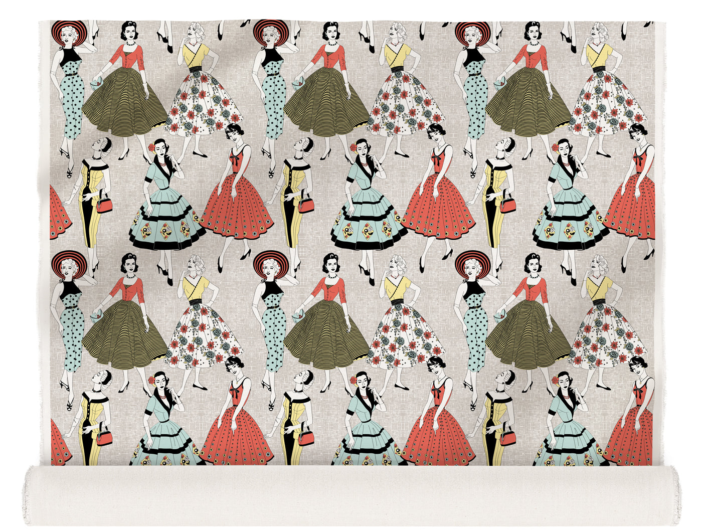 Mid century fashion and vintage dresses are the inspiration behind this Vintage Dress fabric from Dupenny. Influenced by sewing patterns from the 1950s this chic fabric is the epitome of retro style. Strike a pose!