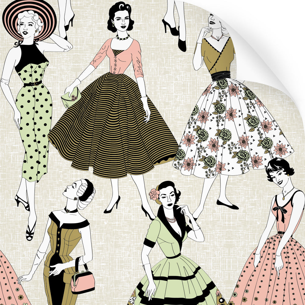 Mid century fashion and vintage dresses are the inspiration behind this Vintage Dress wallpaper from Dupenny. Influenced by sewing patterns from the 1950s this chic wallcovering is the epitome of retro style. Strike a pose!